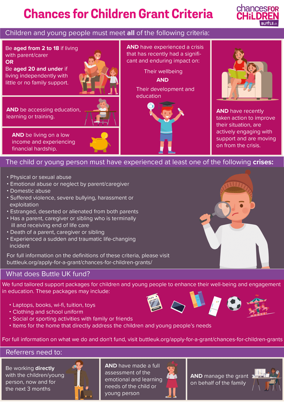 Use our eligibility guide to check if a Buttle grant may be right for the child or young person you’re supporting.